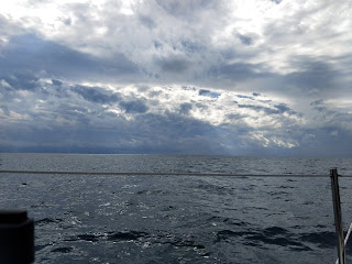 Our route is straight down the coastline with one land mass to round at Cape Canaveral. We put the sails up as soon as we were past the entrance markers and we managed to sail the whole 160 nautical miles. It did get a bit heavy in the middle of the night and we reefed in the main to slow us down. But allover it was a good fast sail, we had one concern the coast guard radio messages emitted on VHF 16 kept giving warning messages for an injured Southern Right Whale, mother with calf in the area and we were a bit worried we might hit her, it was a real possibility and well you know how your imagination can run wild....in the dark in the middle of the night in the middle of the ocean.